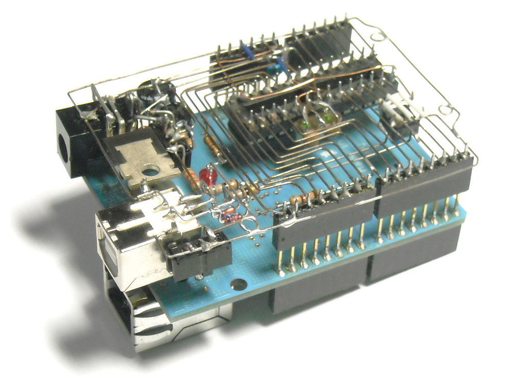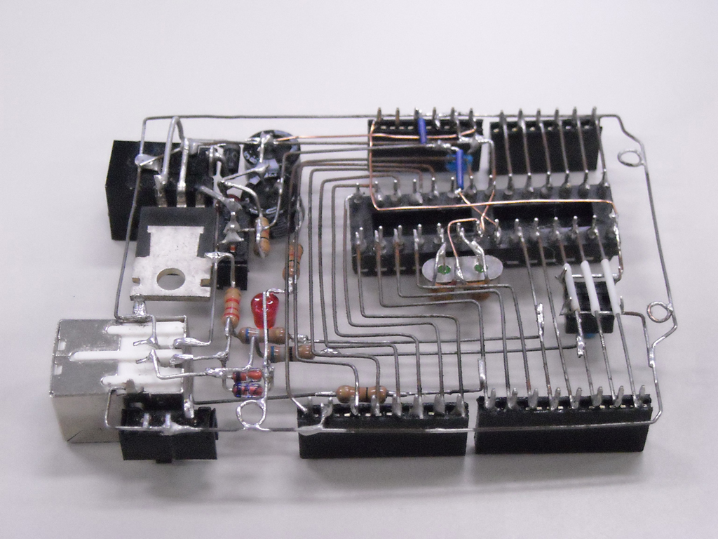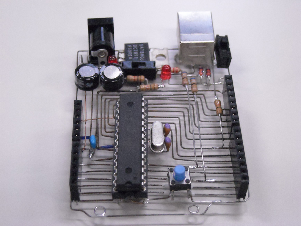 Metaboard(USB直結のArduinoクローン)を空中配線で製作した。
