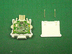 SSRには 松下電工のAQG22205(出力2A・非ゼロクロス)を用いる。このSSRは制御電圧がDC4〜6V電流が20mA程度なので Diecimilaのデジタル端子に直結できる。価格は定価235円で以外と安い。秋葉原では千石電商で入手可能。