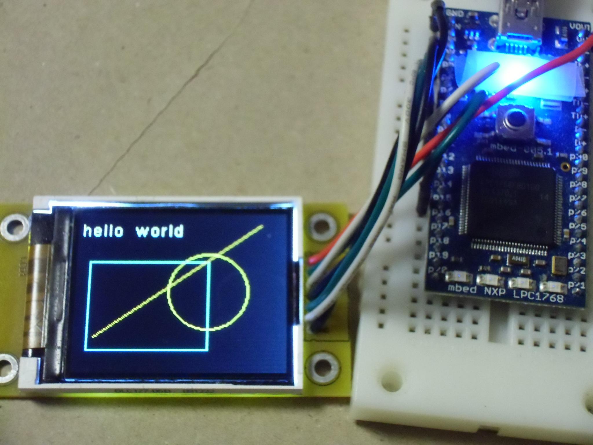 mbedでAitendoで購入した1.8インチ160×128 TFT GLCD(コントロールチップST7735R) をテストしています。