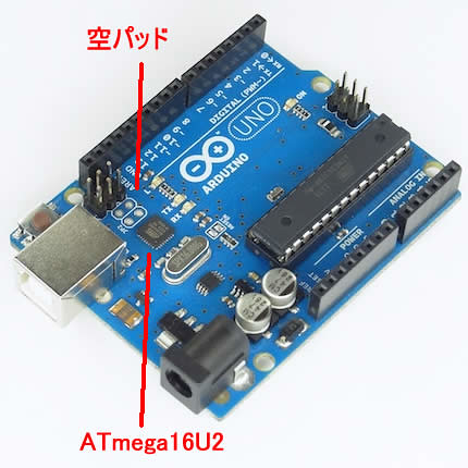 UNO Rev.3 の基板を見ると,usbserialのデバイスがATmega8U2からATmega16U2に変更になっている。JP2という謎の空パッドがある。